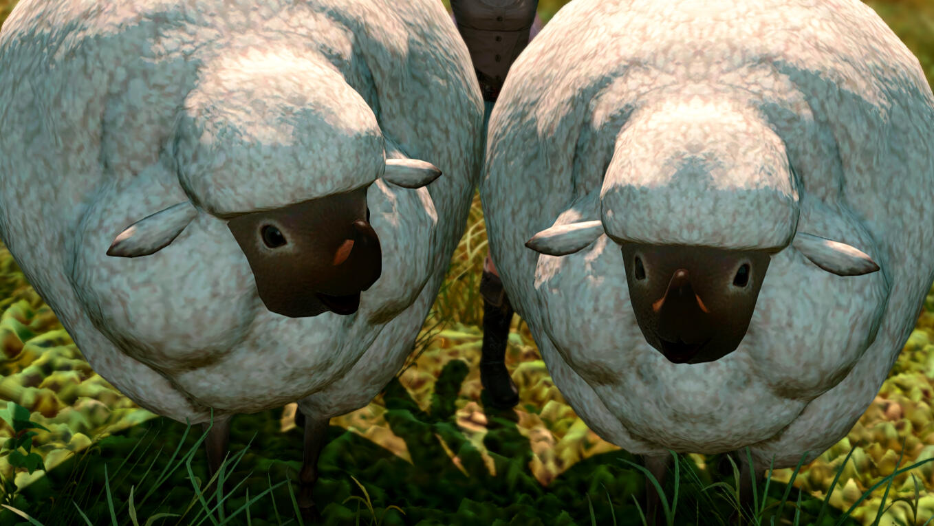 The lost black sheep stands awkwardly in the clearing, her wool matted and covered in bits of dirt and leaves. A dented iron pot sits firmly stuck over her head, her muffled bleats of frustration echoing faintly from within. The poor black sheep stumbles blindly, bumping into tree roots and stones as she tries to shake the pot loose.Aria kneels beside her, biting back a chuckle as she carefully steadies the sheep with a gentle hand. “Alright, alright, hold still,” she says softly, her ocean eyes sparkling with amusement and sympathy. With a bit of effort and some help from her friends, she wiggles the pot free, revealing the sheep's wide-eyed, bewildered expression. The sheep blinks at her rescuers, then lets out a triumphant bleat before headbutting Aria’s leg affectionately.Aria laughs, scratching behind the sheep's ears. “Well, aren’t you a troublemaker? I suppose you’re mine now.” She glances around at the quiet forest, a thoughtful smile spreading across her face. “Maybe… maybe this is where it all begins.”And from that moment, the idea of Whispering Glades began to take root, sparked by one determined little sheep with a pot on her head.
