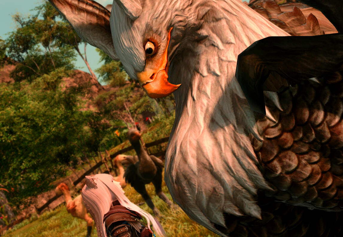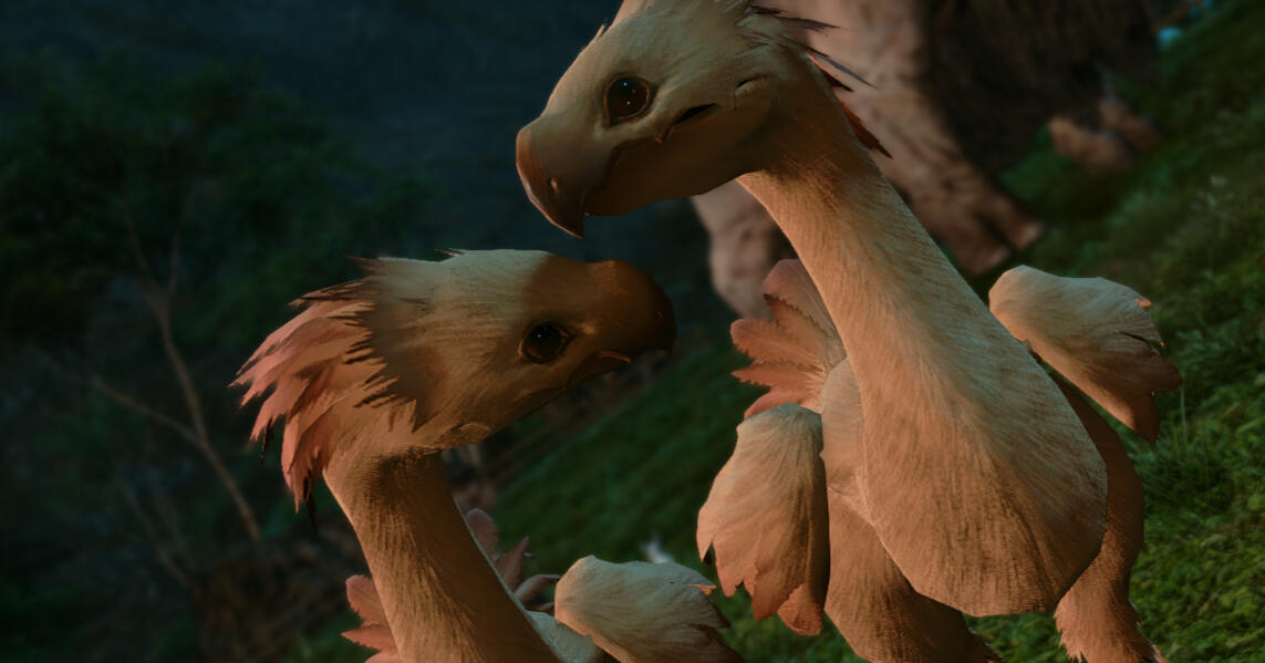 River and Forrest stand side by side, their bright plumage ruffling gently in the wind as they graze in the clearing. River, the sleek, golden-feathered chocobo, is always the more curious of the two, her sharp eyes scanning every movement with interest. Forrest, though identical, has a more reserved demeanor, keeps a careful watch over her, his large, amber eyes gleaming with quiet wisdom.Aria stands at a distance, smiling softly as she watches the pair interact with each other and their surroundings. She remembers the days when River and Forrest were feral, wild and untamed, their mistrust of humans making it nearly impossible to approach them. But with time, patience, and gentle care, Aria had earned their trust— tending to their wounds, feeding them, and allowing them to grow comfortable in their new home.“They’ve come a long way, haven’t they?” Aria murmurs to herself, her eyes soft with pride as she watches them.River snorts softly, nudging Forrest playfully as if to show off her new tricks, like obediently trotting on command or allowing Aria to brush through her feathers. Forrest, ever the cautious one, trots a little closer to Aria, his large head tilting as if asking for reassurance.“I think you two are ready,” Aria says, kneeling down and holding out her hand. River cocks her head in curiosity, while Forrest hesitates before cautiously stepping forward. "Ready for a home, ready for a companion. Just need the right person to see you for what you truly are."Both chocobos nuzzle her hand gently, their eyes bright with trust and affection. While River and Forrest may no longer be wild, they are still untamed in their own way— full of spirit, love, and the potential to be the perfect companions for someone who understands them, just as Aria does.